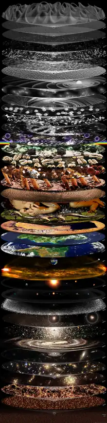 - (en) « Secret Worlds: The Universe Within », une animation Java qui présente la notion d'échelle de la galaxie (dix millions d'années-lumière, 1023 m) au quark (cent attomètres, 10−16 m) ; site Molecular Expressions, université de Floride, inspiré du film Powers of Ten (1977)