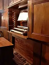 C’est l’organe de commande de l’instrumentiste. La console regroupe les éléments suivants (si présents dans l'instrument) :
