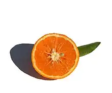 - Tankan, du japonais タンカン (tankan) (Citrus tankan) est un tangor asiatique né en Chine dans le Guangdong, introduit à Taiwan et au Japon, lui aussi difficile à peler, au gout doux et juteux[21]. Plus petit (126 g) et plus sucré[22], il est mange en sourire (スマイルカット (Sumairī)[23]) au Japon (tranche entière en forme de sourire dont ont mange la pulpe et la peau)[24].