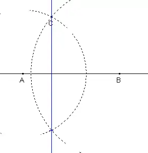 La figure de droite montre qu'il est inutile que les deux cercles soit de même rayon. En effet, avec les notations de la figure, soit D le deuxième point d'intersection des deux cercles et O le milieu de C et D. Comme le triangle CAD est isocèle, la droite passant par A et O est perpendiculaire à celle passant par C et D. Un raisonnement analogue montre que la droite passant par B et O possède les mêmes propriétés ; elles ont donc la même direction et un point commun O, ce qui montre qu'elles sont confondues avec la droite Δ1.