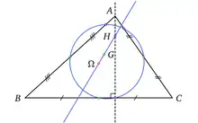De même, les trois hauteurs d'un triangle d'un triangle sont concourantes. Le point d'intersection s'appelle l'orthocentre. Une hauteur est une droite passant par un sommet et perpendiculaire au côté opposé. Un autre résultat précise que les trois médianes sont aussi concourantes. Le point d'intersection est le centre de gravité. Ce qui signifie que si un triangle est matérialisé en un solide homogène, il est en équilibre sur une pointe posée exactement sur ce point d'intersection. Leonhard Euler (1707-1783) trouve une droite remarquable. Le centre de gravité, le centre du cercle inscrit et l'orthocentre sont alignés. Cette droite passe par le centre d'un cercle étonnant appelé cercle d'Euler. Il passe par neuf points remarquables du triangle. Karl Wilhelm Feuerbach (1800 - 1834) établit son théorème affirmant que le cercle d'Euler est tangent aux trois cercles exinscrits du triangle. Tous ces théorèmes utilisent les propriétés de l'orthogonalité pour pouvoir être démontrés.