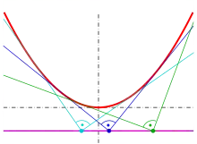 Toute parabole peut être transformée par un mouvement rigide (les angles ne sont pas modifiés) en une parabole d'équation . La pente en un point de cette parabole est . Remplacer donne la représentation paramétrique de la parabole avec la pente tangente comme paramètre : La tangente a pour équation avec le paramètre encore inconnu , qui peut être déterminé en insérant les coordonnées du point de la parabole. On obtient