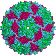 Représentation de la capside du bactériophage MS2.
