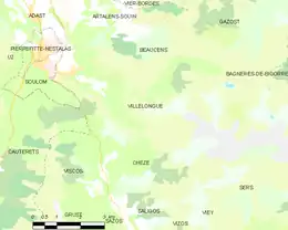 Localisation de Villelongue dans le département des Hautes-Pyrénées.