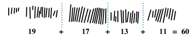 Il reconnut également, en colonne (a), l'écriture dans l'ordre des nombres premiers compris entre 10 et 20, soit 11, 13, 17 et 19.