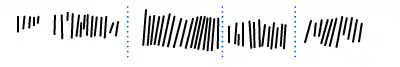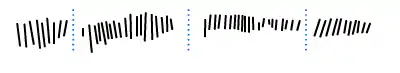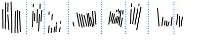 La colonne peut être divisée en huit groupes. Par un comptage approximatif et instinctif, on peut compter (entre parenthèses figure le nombre maximal d'encoches) : 7(8), 5(7), 5(9), 10, 8(14), 4(6), 6, 3 entailles.