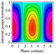 où g est le gain paramétrique, proportionnel à la non-linéarité du milieu et à l'amplitude de l'onde de pompe, et .