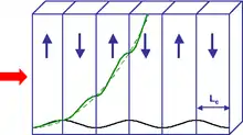 Pour cela, le signe de la non-linéarité du matériau doit être inversé pour toutes les longueurs de cohérence (voir figure ci-contre). Ceci équivaut à rajouter une phase de π au désaccord de phase, c'est-à-dire à renverser le sens du transfert d'énergie entre les ondes. Les interférences destructives qui ont normalement lieu à chaque longueur de cohérence sont supprimées, et la puissance des ondes générées peut croître continûment à la traversée du milieu non linéaire (voir figure ci-contre). Cependant, l'efficacité est réduite d'un facteur (2/π)².