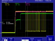 - défaut d'isolement entre plusieurs entrées de l'oscilloscope. Par exemple, si l'oscilloscope est utilisé pour la visualisation de tension sur un circuit RLC série et que l'on mesure la tension aux bornes de la résistance et la tension aux bornes du condensateur, les différentes masses de mesures seront portées au même potentiel, ce qui peut être dangereux. Pour éviter ces défauts, on peut soit utiliser des oscilloscopes à entrées différentielles intégrées, soit utiliser une ou plusieurs sondes différentielles[2]. Ces appareils auront pour but d'assurer l'isolation galvanique (avec des optocoupleurs par exemple) entre les différents potentiels de mesure sur le circuit et les potentiels de l'oscilloscope (entrée et masse).