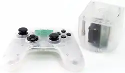 - Jusqu'à 4[21] manettes sans fil avec les contrôles standards (deux sticks analogiques, croix directionnelle, huit boutons d'action, un bouton système) ainsi qu'un pavé tactile