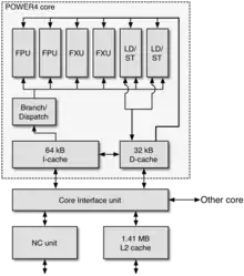 Schéma d'un core Power4.