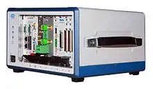 PCI eXtensions for instrumentation (PXI) est un système de bus basé sur le bus PCI et est une évolution des normes cPCI pour la mesure et de la technologie d'automatisation. Ceci élimine les câbles et les conversions de signal entre l'ordinateur et le moniteur sont nécessaires. Ainsi, un traitement particulièrement rapide sur la carte même ou à proximité est possible. PXI est le bus système le plus rapide dans l'industrie.