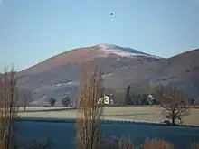 Vue du village depuis la route de Juxue. | |||||