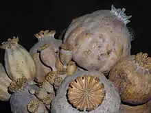 Toutes les variétés de pavot somnifère ont été utilisées, parfois indifféremment, en officine dans la confection d'extraits (teinture, laudanum[18], sirop, extrait sec, opium...), depuis le simple pavot des jardins jusqu'à des formes gigantesques de pavots blancs et noirs développés dans un but médical, narcotique ou ornemental.