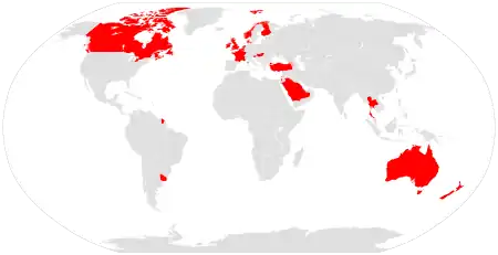Cette mesure est en vigueur en Australie, en France, au Royaume-Uni, en Nouvelle-Zélande, en Norvège, en Irlande, en Thaïlande, en Uruguay, en Arabie saoudite, en Slovénie, en Turquie, en Israël, au Canada, à Singapour, en Belgique, aux Pays-Bas, en Hongrie, au Danemark, à Guernesey, à Jersey et en Finlande. Elle est en attente d'application à Maurice, à Oman, en Arménie, en Birmanie, en Géorgie et en Côte d'Ivoire.