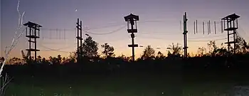 Les parcours sur poteaux peuvent être installés facilement en dehors d'une forêt, mais exigent des investissements plus élevés dus à l'installation des mâts. Un mélange de mâts et d’arbres en lisière d'une forêt peut être un compromis.
