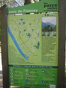 Cet espace vert est le plus grand parc de la ville et accueille le lac de Fiancey[1].