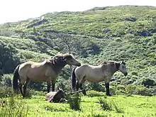 Les bruyères couvrent les flancs de montagnes, notamment la callune (Calluna vulgaris), la bruyère des marais (Erica tetralix) et la bruyère cendrée (Erica cinerea)[7].