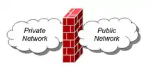 Un pare-feu, représenté par un mur de briques, pour cloisonner le réseau privé.
