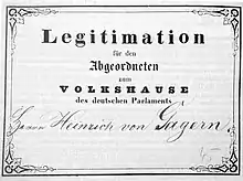 Le conservateur modéré Ernst von Bodelschwingh appartient également au parti de la gare. Son programme estsigné par 91 membres de la Chambre du peuple et 27 membres de la Chambre des États. Ils disposent d'une courte majorité absolue à la Chambre du Peuple, qu'ils peuvent renforcer par des "sauvages" (députés non inscrits). Le conseil de faction de la Chambre du peuple est composé du baron von Soiron, de Nebelthau (de), du baron von Speßhardt (de), de Hergenhahn, d'Ernst von Bodelschwingh, du comte von Schwerin, du comte Georg von Vincke, du comte von Keller et de Geßler (de)[14]. Un membre éminent est Heinrich von Gagern, le premier président du Parlement de Francfort et plus tard ministre-président du Reich en 1848/1849.