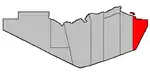 Situation sur une carte des paroisses civiles du comté de Restigouche (certains DSL et municipalités ne sont donc pas montrés).