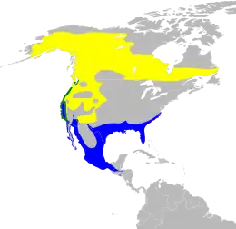 Aux États-Unis, cette paruline niche du centre de l'Alaska jusqu'en Californie. Au Canada, on la retrouve du Yukon au Labrador. La Paruline verdâtre hiverne du sud des États-Unis jusqu'au sud du Guatemala.