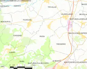 La commune de Passa se trouve dans le département des Pyrénées-Orientales, en région Occitanie[I 1].