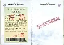 | Les passeports ROC sont refusés. Les nationaux ROC avec droit d'habitation doivent obtenir un permis spécial. Les nationaux non-ROC doivent avoir un passeport de la république populaire de Chine. | |