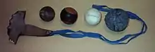 - La pelote de Galotxetes : Elle n’est utilisée que pour ce jeu. Bien qu’elle soit plus grosse et plus lourde que les autres elle ne nécessite pas l’usage de protections. Elle est faite avec des chiffons et n’a aucune faculté de rebond. Son diamètre est de 70 mm pour un poids de 60 grammes.