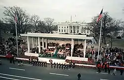 En 1885, le président Grover Cleveland est le premier à regarder sa parade depuis une tribune spécialement construite sur l'avenue devant la Maison-Blanche[1].