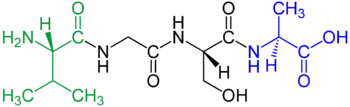 Après la constitution de la chaine peptidique, une extrémité est porteuse d'un groupement amine libre — l'extrémité N — ou amino-terminale, et l'autre d'un groupement carboxylique — extrémité C — ou carboxyl-terminale. Dans certains cas ces groupements, tout comme les chaines latérales des acides aminés, peuvent être modifiés. Par convention, et également à cause de la direction de leur synthèse, les séquences peptidiques sont toujours considérées dans le sens N vers C. Pour les acides aminés dicarboxyliques ou diaminés, on précise le carboxyle ou l'amine engagé dans la liaison peptidique.