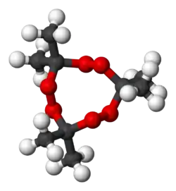 | Nom UICPA | 3,3,6,6-tétraméthyl-1,2,4,5-tétraoxane (dimère) 3,3,6,6,9,9-hexaméthyl-1,2,4,5,7,8-hexaoxacyclononane (trimère) |