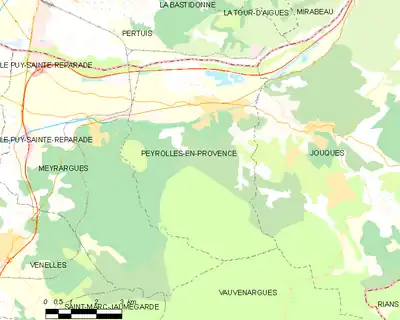 Commune de Provence de l'aire urbaine de Marseille-Aix-en-Provence située à 17 km au nord-nord-est d'Aix-en-Provence. Elle est la ville-centre de l'unité urbaine de Peyrolles-en-Provence.