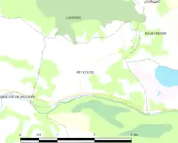 Peyrouse est limitrophe de trois autres communes dont l'enclave de Lourdes de la forêt de Mourle au nord.