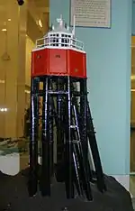 Le premier phare a été érigé entre 1775 et 1776, sur les plans du fabricant d'instruments de musique de Liverpool Henry Whiteside. Il était bâti sur neuf piliers de chêne, permettant à la mer de passer par-dessous. Bien qu'il ait souffert de quelque balancement, il a tenu pendant quatre-vingts ans. Au cours de sa vie, un certain nombre d'étais supplémentaires ont été ajoutés aux neuf premiers.