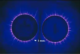Le procédé dit photographie Kirlian[1] (ou effet Kirlian) a été découvert accidentellement en 1939 par le technicien soviétique Semyon Kirlian et sa femme, la journaliste et enseignante Valentina Kirlian. Les clichés Kirlian montrent un halo lumineux autour d'un objet soumis à une haute tension électrique.