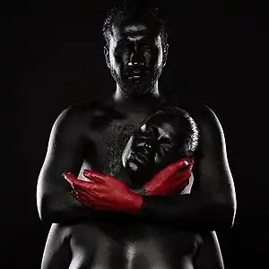 Peindre le corps humain en noir est également utilisé dans la photographie low-key en utilisant des colorants ou des pigments non toxiques afin d'assombrir et d'améliorer autant que possible la couleur des sujets photographiés et d'obtenir les effets souhaités[63]. Pour obtenir l'effet de réflexion de la lumière qui crée un contour blanc du corps peint, ainsi qu'un contraste élevé entre le noir et le blanc, divers colorants sont alors mélangés à des crèmes pour le corps et utilisés. Il s'agit généralement de henné, de détrempe ou de peinture acrylique. Le latex liquide, composé de latex naturel et de colorants, est également utilisé avec prudence pour laisser la peau respirer[71],[72].