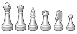 | Japonais | ? | キング | ? | クイーン | ? | ルーク | ? | ビショップ | ? | ナイト | ポーン | |