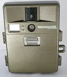 - Il peut utiliser une barrière infrarouge ou laser : lorsque l'animal traverse cette barrière, la photo est prise. Des modèles très précis permettent une triangulation pour déclencher l'appareil photo lorsque le sujet est au centre du cadre[2].