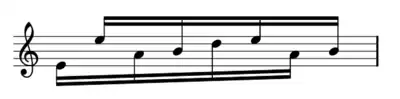 Ce motif est tout d'abord joué en solo par un seul piano. Puis commence alors le principe de déphasage où le deuxième pianiste va, après une première partie à l'unisson, accélérer le motif de départ pour le dépasser d'une double croche[9]; rester un moment au même rythme que le premier pianiste, puis avancer d'une nouvelle double croche, répétant le principe douze fois jusqu'au moment où les deux pianistes se retrouveront à nouveau à l'unisson.