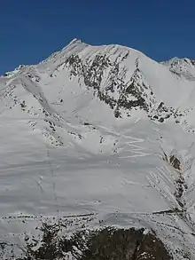 Vue du pic de l'Herpie depuis l'Alpe d'Huez au sud-ouest. | |