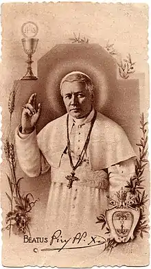 Giuseppe Melchiorre Sarto, né le à Riese en Vénétie (alors dans le royaume de Lombardie-Vénétie, maintenant Riese Pie X, dans la province de Trévise, en Italie) et mort le à Rome, est le 257e pape de l’Église catholique sous le nom de Pie X (en latin : Pius X, en italien : Pio X) du à sa mort.
