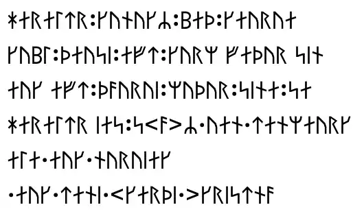 - ᚼᛅᚱᛅᛚᛏᚱ ᛁᛅᛋ᛬ᛋ<ᚨ>ᛦ᛫ᚢᛅᚾ᛫ᛏᛅᚾᛘᛅᚢᚱᚴ