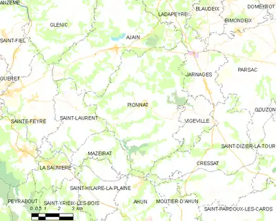 Pionnat est limitrophe de huit autres communes, dont Ladapeyre sur une longueur de moins d'un kilomètre au nord-est.