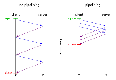 L'avantage supplémentaire à l'utilisation du pipelining est qu'un client peut effectuer plusieurs requêtes sans attendre chaque réponse, permettant à une seule connexion TCP d'être utilisée avec plus d'efficacité, dans un temps plus court. Le concept est similaire aux mécanismes de fenêtre glissante dans TCP ou fenêtre d'anticipation dans HDLC.