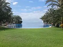 Une piscine à débordement est un type de piscine ou de miroir d'eau conçu pour donner l'illusion que la piscine fait partie à part entière du bassin où elle se trouve. Sur une face avec une vue dégagée sur l'horizon, l'eau débordant du bassin principal est récupérée en contrebas dans une gouttière d'évacuation, les bordures du bassin étant masquées. Jusqu'à un tiers plus cher qu'une piscine traditionnelle, ce type de piscine est souvent associé au luxe.