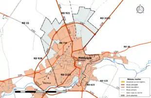 La RD 2152, qui traverse l'agglomération pithiveraine, correspond à l'ancienne route nationale 152. À sa création, en 1824, la RN 152 succède à la Route impériale 172 et relie Briare à Angers par la rive droite de la Loire[35]. La route est déclassée en 1972 en RD 952 entre Briare et Châteauneuf-sur-Loire et, en contrepartie, elle récupère l'ancienne section de la RN 51 entre Orléans et Fontainebleau[36]. En 2014, elle supporte un trafic de 6 183 véhicules/jour[37].