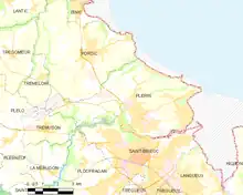 Au sud, la commune est séparée de Saint-Brieuc par la vallée du Gouët et le port du Légué.