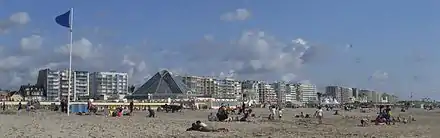 Dunes au nord de la plage, au fond : le front de mer, nord