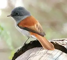 - Terpsiphone bourbonnensis (zoizo la Vierge, ou terpsiphone de Bourbon), endémique de La Réunion et de Maurice